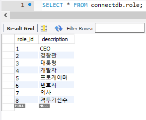 roles 테이블의 모든 튜플이 json으로 전송되었음을 확인할 수 있다. RoleByIdServlet.java