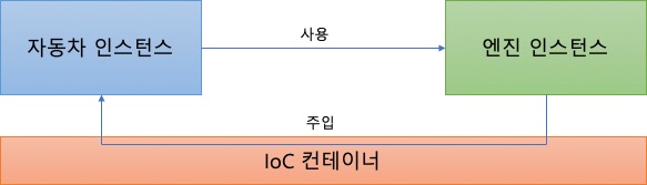 예시 1 : DI가 적용되지 않음. Car 클래스에서 Engine 인스터스를 직접 생성한다.