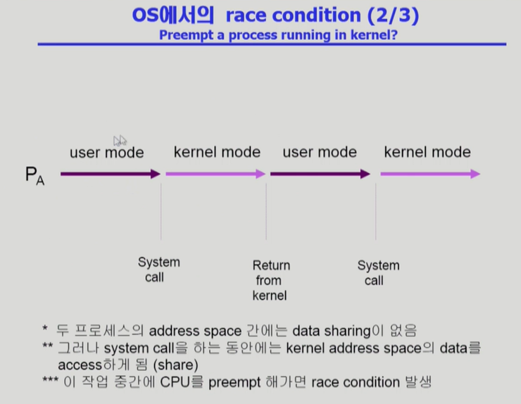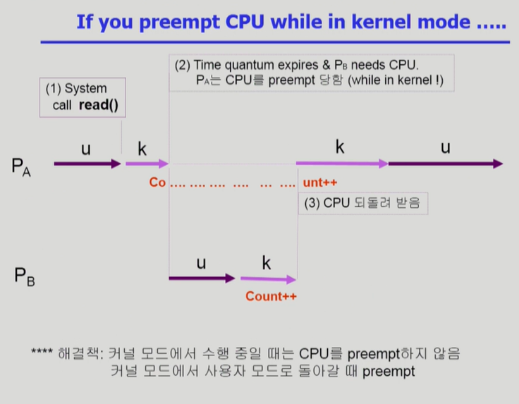 ◾️ 해결방법 : 커널모드 수행중일땐 Context switch를 하지 않는다.