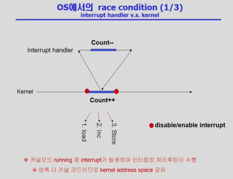 ◾️ 인터럽트 처리 루틴도 커널 코드이다. 즉 커널 데이터에 중복으로 접근하는 경우이다.