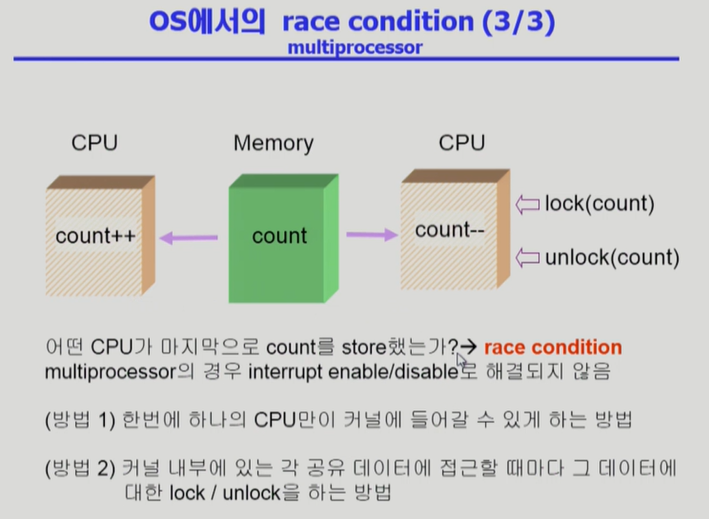 📌 Multi-processor에서 shared memory 내의 kernel data에 동시 접근하는 경우