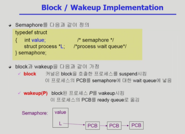◾️ 단지 wait()와 signal()을 사용해 프로세스를 Block 시키고 Wakeup 시키는 작업만 해준다.
