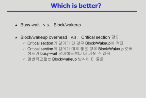 ◾️ block and wake up 방식의 오버헤드 : 프로세스의 상태를 바꿔줘야한다.(block-wake up)