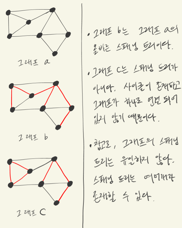 ◾️ 스패닝 트리에 포함된 간선들은 정점들을 트리 형태로 전부 연결해야한다.
