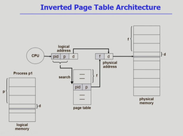 ◾️ 이제까지 Page Table은 프로세스마다 가지고 있다고 했다. 하지만 Inverted Page table은 시스템 안에 Page Table을 단 하나만 둔다.