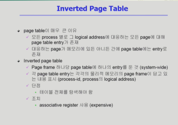 ◾️ Inverted Page table Full Scan은 Associative라는 별도의 하드웨어를 사용하여 병렬적으로 빠르게 이루어지게 한다.