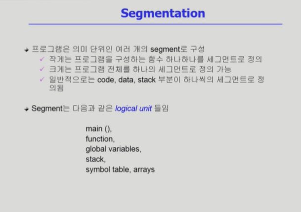 ◾️ Segmentation은 프로세스의 주소 공간을 의미 있는 단위로 자른다. 균일한 크기로 자르는 Paging 기법과의 차이점이다.