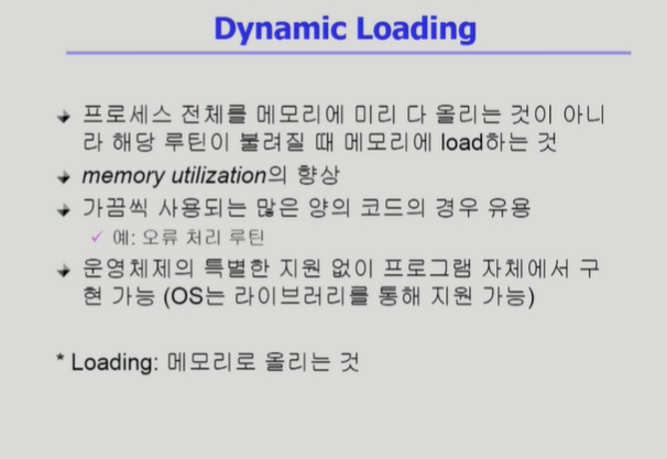 ◾️ Dynamic Loading은 어떤 루틴이 필요할때 그 때 동적으로 물리적 메모리에 적재하는 것이다.