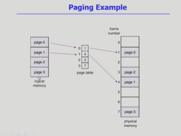 ◾️ 논리적 주소의 p를 Page Table의 인덱스로 사용하여 Page Frame 번호를 알아내고 Page Frame에 offset을 더해서 물리적 주소 변환을 한다.