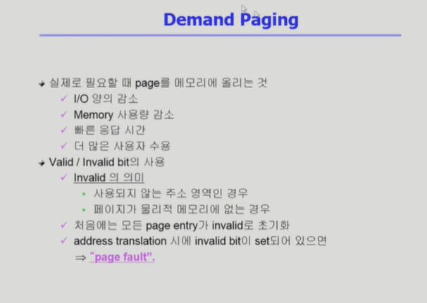 ◾️ Demand Paging이란 Page 요청이 있을 때, Page를 메모리에 올리는 것을 말한다.