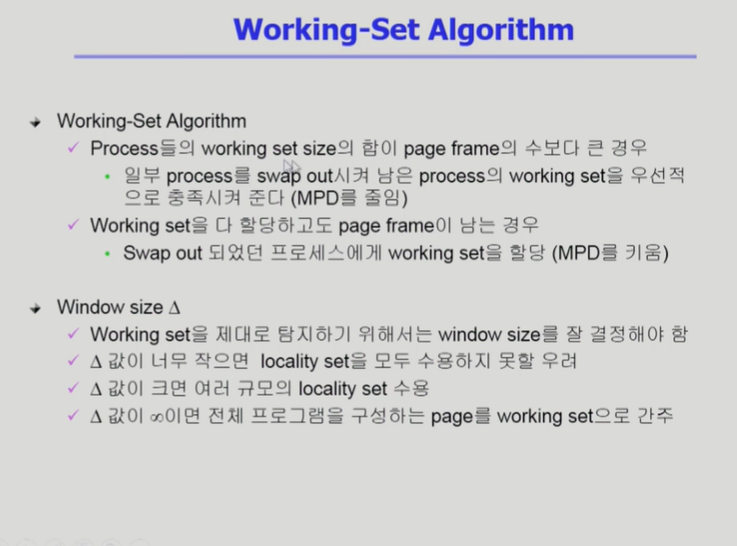 ◾️ 특정 시간동안 집중적으로 참조되는 Page 집합인 working set은 미리 알아낼 수가 없다.