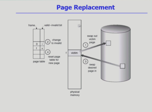 - Page Table에서 victim Page Entry에 대해서 in-vaild로 바꾼다. (현재 메모리에 없음을 표시)