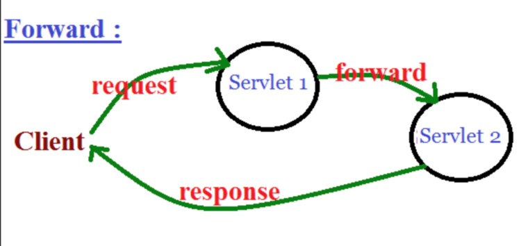- WAS의 서블릿이나 JSP가 요청을 받은 후 그 요청을 처리하다가, 추가적인 처리를 같은 웹 애플리케이션 안에 포함된 다른 서블릿이나 JSP에게 위임할 수 있다. 이를 포워드(forward)라고 한다.